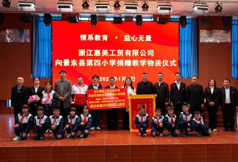 Le 5 janvier, le Zhejiang Huimei Industry & Trade Co., Ltd. s'est rendu à la quatrième école élémentaire du comté de Jingdong, dans la province du Yunnan, pour mener des activités de don de matériel pédagogique.